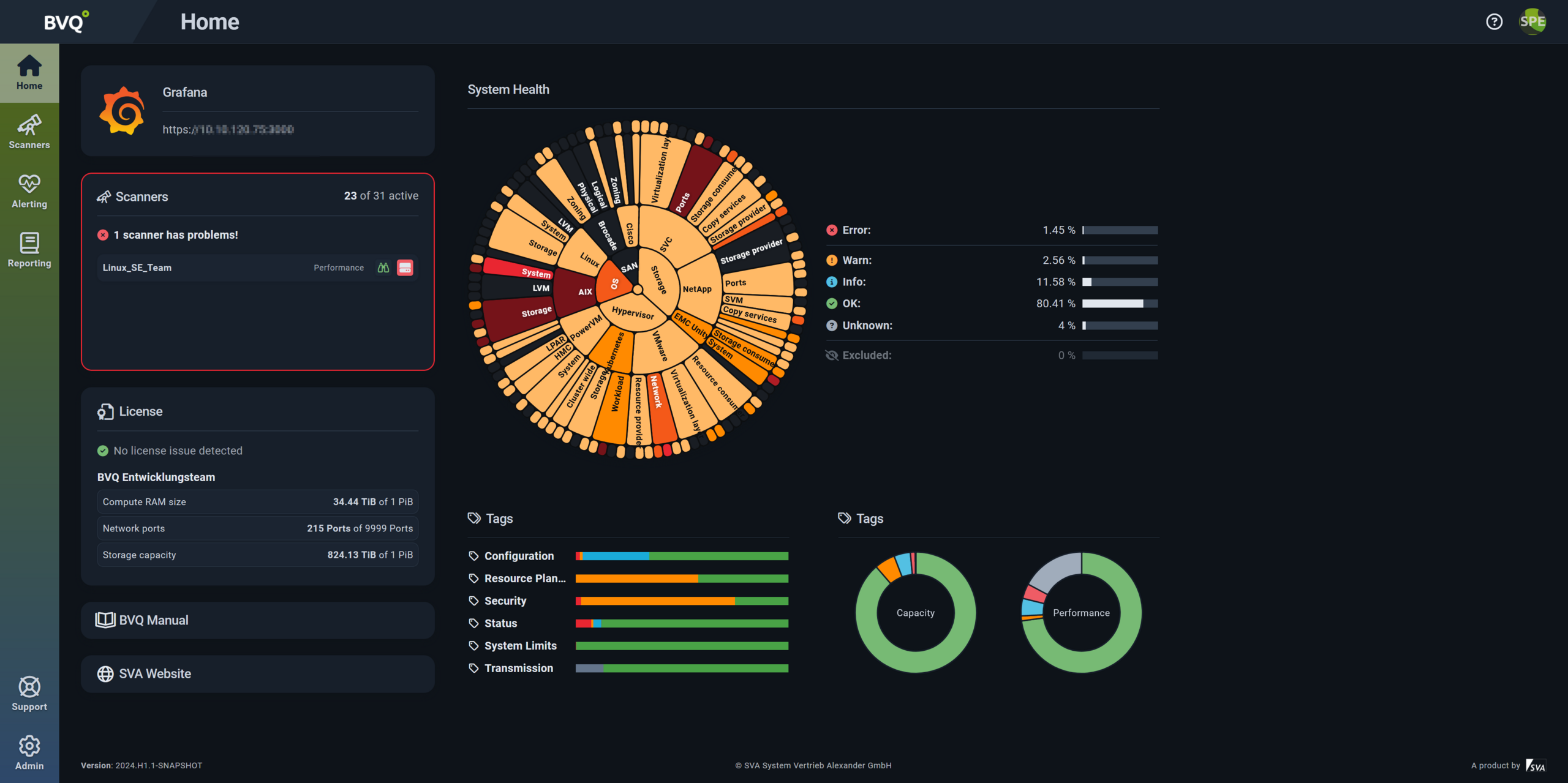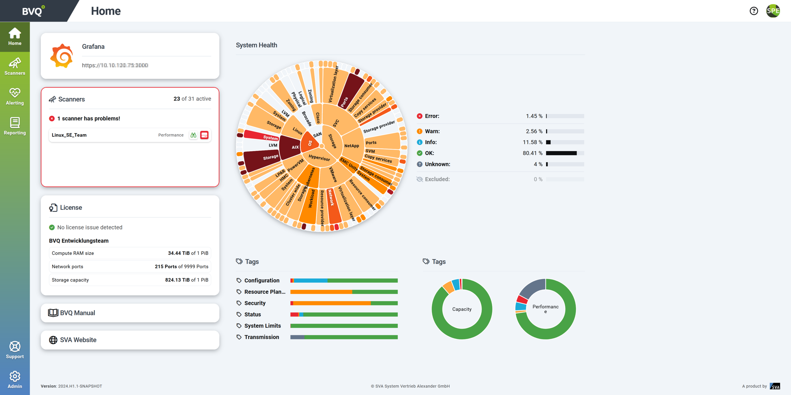 Die einzelnen BVQ° Funktionen (z.B.: System Health Map, Alerting, Reporting) wurden jeweils initial entwickelt und eingebaut. Trotzdem war die Handhabung des BVQ° Servers den meisten Kunden und Anwendern vertraut, viele Schritte und Einstellungen sind in eine gewohnte Handhabung übergegangen. In der Betreuung unserer Kunden zeigte sich jedoch immer wieder, dass einige Punkte nicht sehr übersichtlich gestaltet und manche Einstellungen nur durch längeres Suchen zu finden waren. Durch eine intensive Kundenbefragung und Feedback des Supports konnte einiges an Optimierungspotential ausgearbeitet und in der aktuellen Version 2024.H1.1 umgesetzt werden.