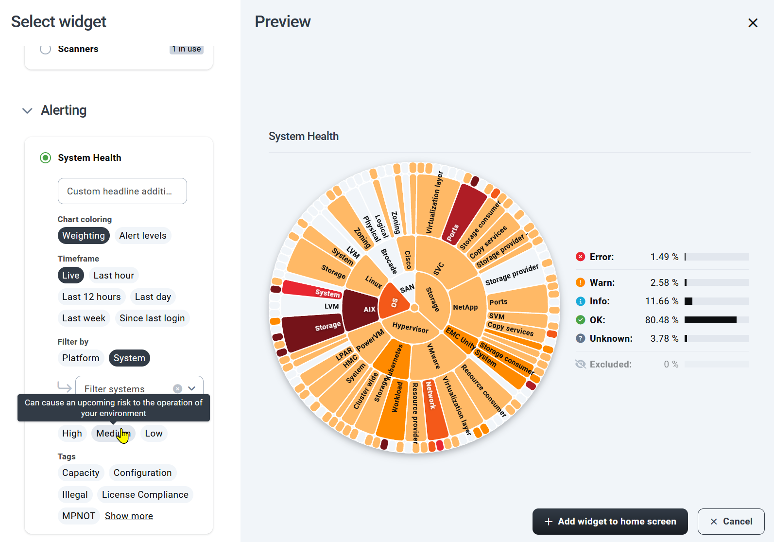 Abb.: Darstellung der System Health Map mit unterschiedlichen Filteroptionen