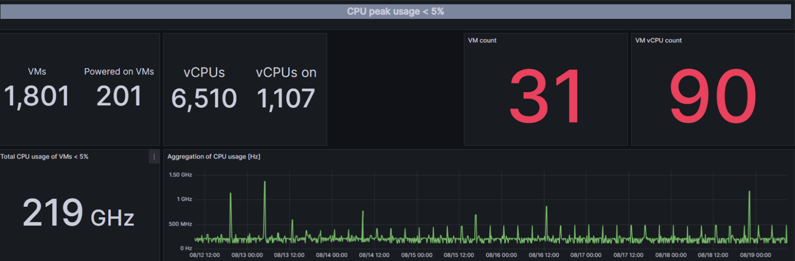 Abb. 1: Übersicht aller VM mit CPU-Auslastung unter 5%