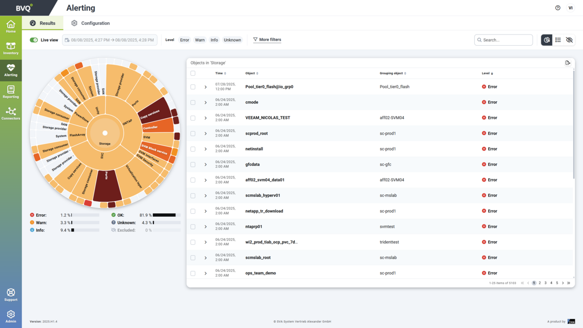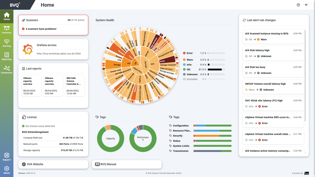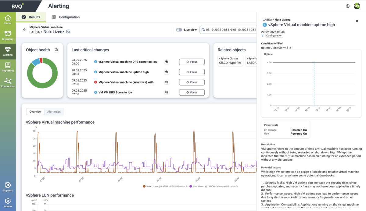 BVQ° unterstützt Ihr Infrastrukturmanagement mit automatisierter Workload-Überwachung. Frühzeitige Fehlererkennung informiert Sie über Lastspitzen, während Ressourcenoptimierung durch automatische Empfehlungen für eine effiziente Nutzung sorgt.